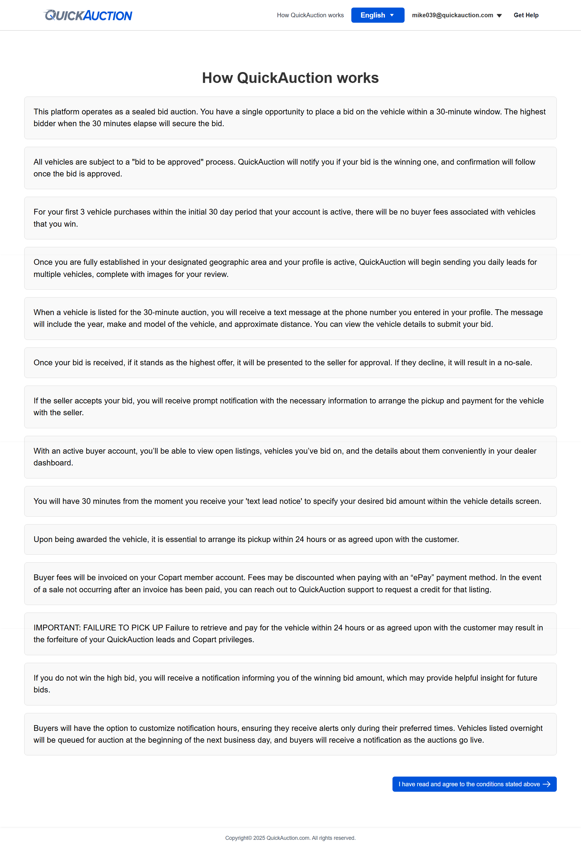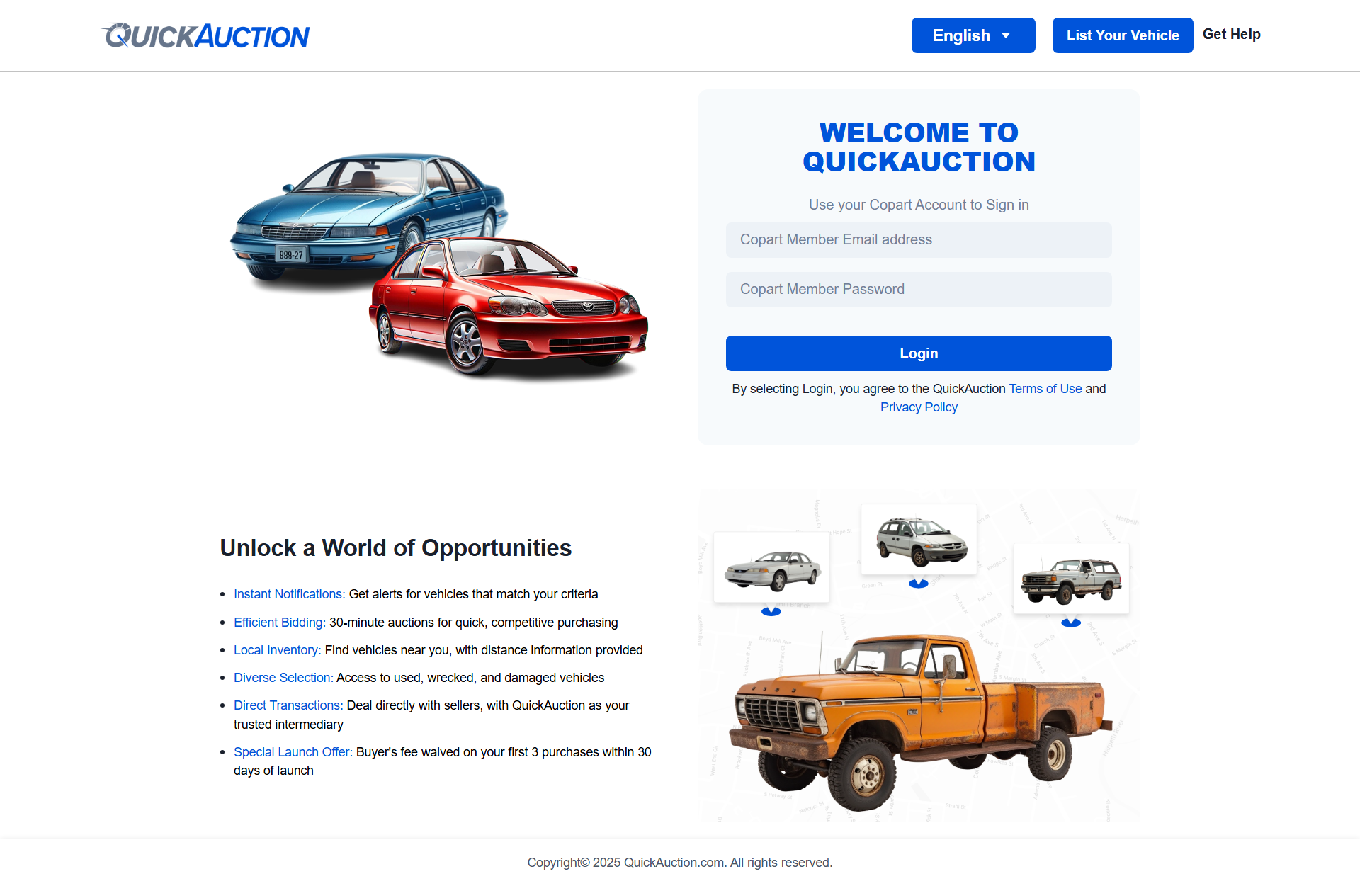 Led front-end development for QuickAuction, a live auction platform with dedicated buyer and seller flows. Integrated multiple APIs including VIN lookup to support real-time vehicle listings and bidding functionality, enhancing user experience in a dynamic marketplace.